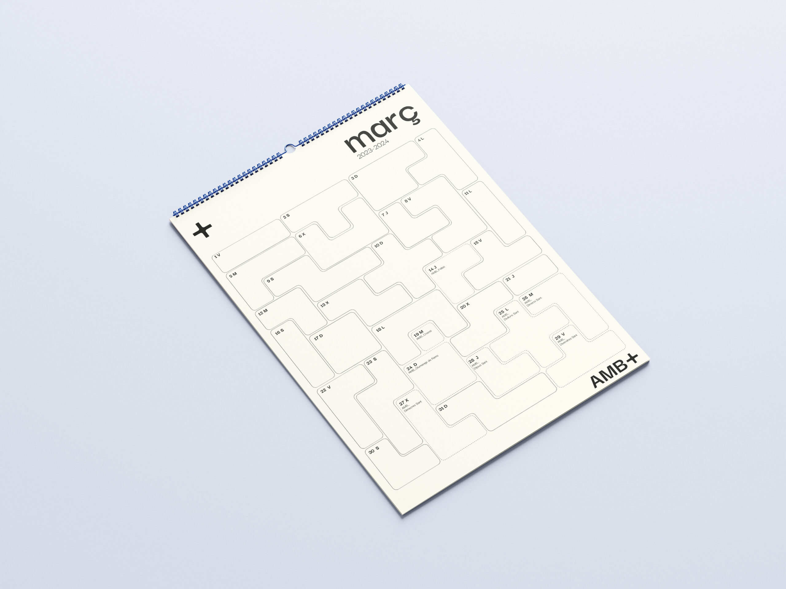 Amb+ es un proyecto que se ha desarrollado en colaboración con los diseñadores Adrián Pelayo, Carla Alejo, Nieves Martínez, Noa Abad y Elvira Peinado. Se ha creado en el workshop impartido por Colla Paper (estándar + impresum) titulado «Make Notebooks Not Bombs», desarrollando un innovador calendario inspirado en el juego Tetris y cuyo nombre nace de la palabra «ambliopía», reflejando una interesante conexión con esta condición visual. La ambliopía, conocida también como «ojo vago», puede beneficiarse del juego Tetris como terapia, ya que este juego ayuda a mejorar la coordinación visual. Amb+ no solo sirve como una herramienta de planificación, sino que también añade un toque de creatividad y juego a la rutina.